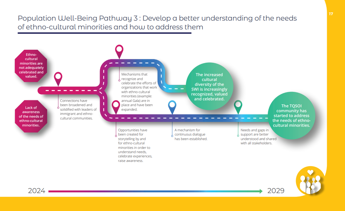 - Develop a better understanding of the needs of ethno-cultural minorities and how to address them.